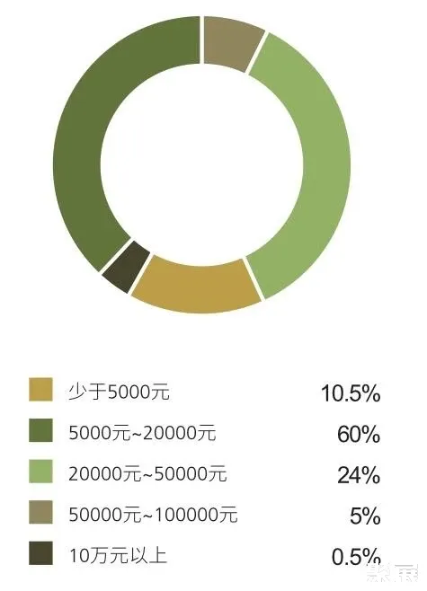 關(guān)于中國家庭未來一年在旅游方面的年消費力,60%的旅行社及旅游企業(yè)預(yù)期將在人民幣5000元至20000元之間,24%預(yù)期在人民幣20000元至50000元之間,少于5000元的占10.5%,50000元以上的為5.5%。