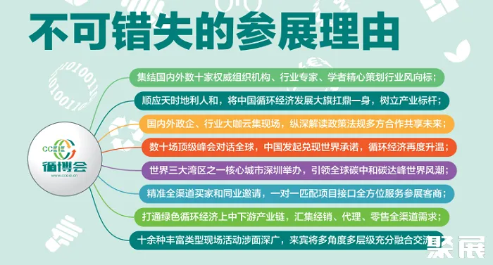 本屆“循博會”的舉辦將樹立綠色循環(huán)經(jīng)濟產(chǎn)業(yè)集群發(fā)展標桿,打造中國綠色循環(huán)經(jīng)濟產(chǎn)業(yè)的展示窗口與智慧高地,獻禮建黨100周年。預計總面積2萬平米,專業(yè)客群人數(shù)超過3萬人次。