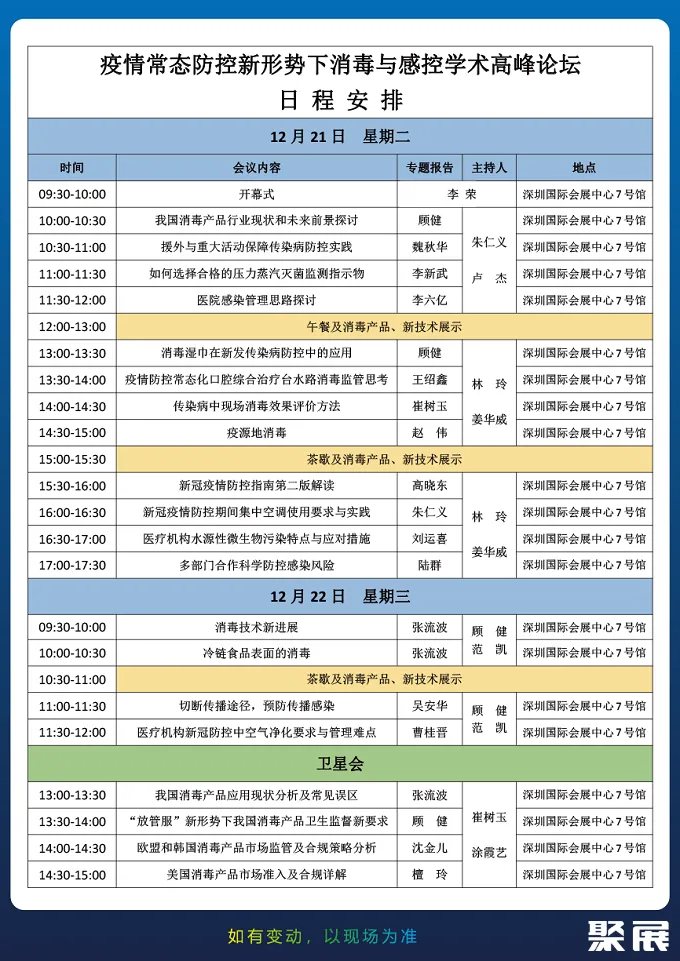 2021深圳國際醫(yī)用消毒及感控設(shè)備展覽會定于2021年12月21日-23日在深圳國際會展中心(寶安新館)舉辦,展會產(chǎn)品涉及:醫(yī)用消毒展區(qū)、消毒用品展區(qū)、消毒設(shè)備展區(qū)、消毒包裝展區(qū)、感染控制及預(yù)防展區(qū)、消毒感控自動化展區(qū)等產(chǎn)品;展會堅持走專業(yè)化的特色發(fā)展道路,以推動產(chǎn)業(yè)升級、行業(yè)創(chuàng)新發(fā)展為己任,為國內(nèi)外買家采購交流提供一個行業(yè)的饕餮盛宴!(本文內(nèi)容版權(quán)歸屬聚展所有,未經(jīng)同意,禁止轉(zhuǎn)發(fā))