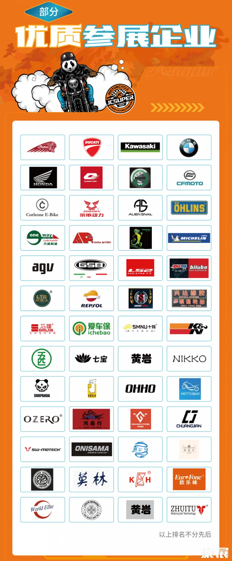 主辦方嚴(yán)把展品質(zhì)量關(guān),200+機(jī)車參展品牌中,大貿(mào)品牌占比超過10%,區(qū)域龍頭品牌超過25%,杜卡迪、川崎、本田等知名大貿(mào)品牌將攜重磅款悉數(shù)到場(chǎng);細(xì)分的機(jī)車市場(chǎng)特色品牌超過60%,精選的高品質(zhì)參展商,可為買家和觀眾提供口碑及銷量的雙重保證,讓產(chǎn)品交易更加安全、放心。
