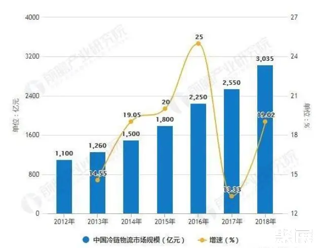 2012-2018年中國冷鏈物流市場規(guī)模統(tǒng)計及增長情況預(yù)測